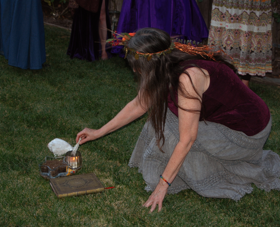joining in a circle and invoking the four directions, the sky, the ground, and our own beings. We called our grandmothers, mothers, sisters, children, grandchildren, and friends into the circle. We smudged each other with sage. Being justly joined and purified, we moved to the Crone Ceremony. Our Priestess, Tammy Trejo, blessed us with wisdom about the Crone Journey and prepared us for the Crone Ritual.
