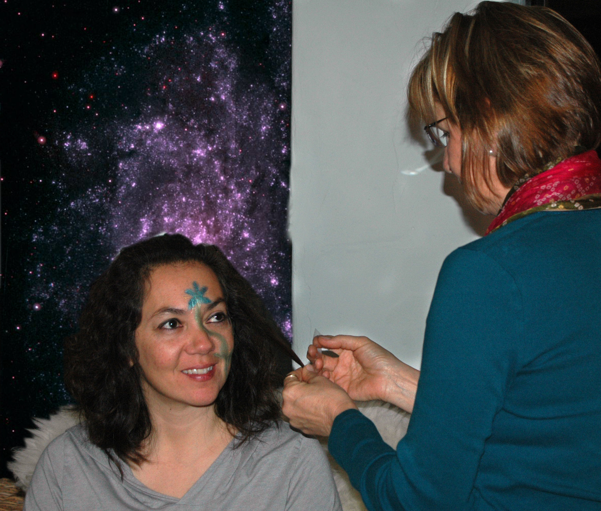 Touch, touch, touch … what can I say? I am home now and writing this BLOG. I have a Henna design on my left hand. I have BLING! in my hair. My arms have been massaged by one of the best hand therapists in the field (Nancy Petty!). I have had a Tarot reading.