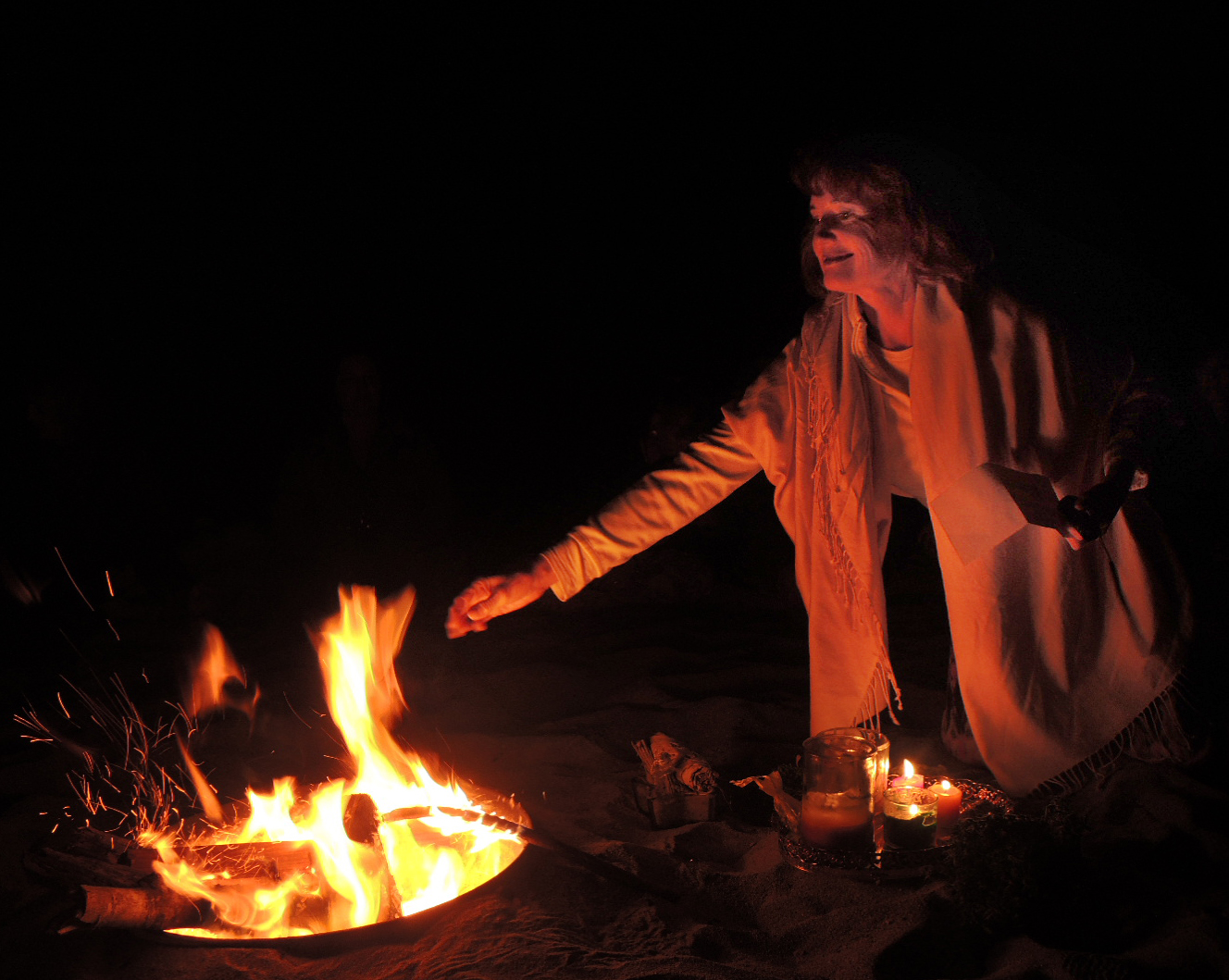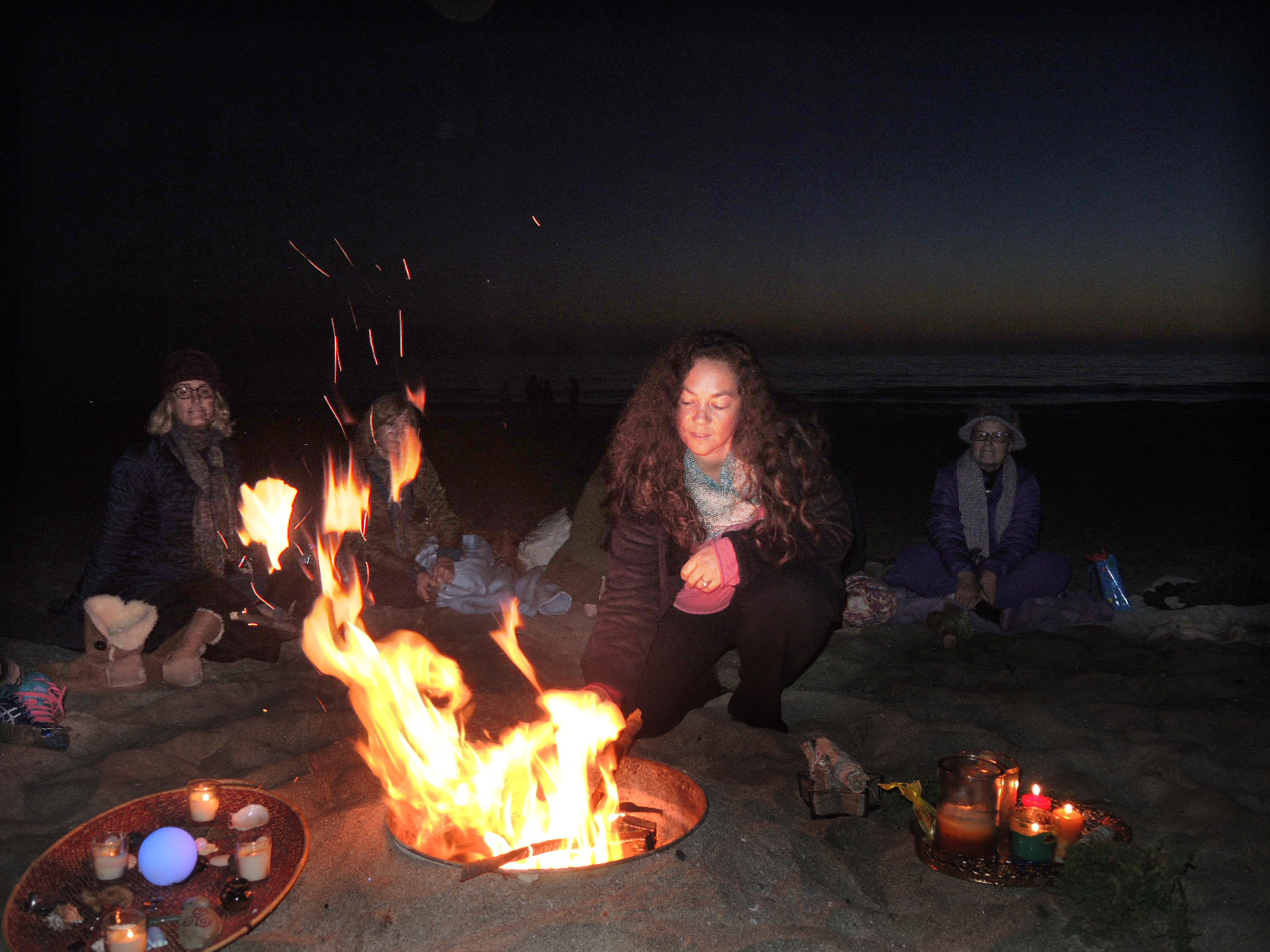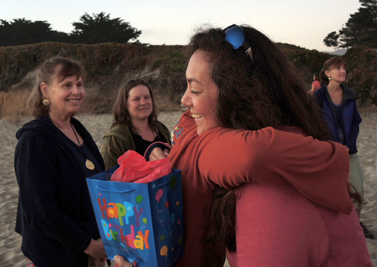 Our spirits lifted greeting one another and marveling at the blessing of perfect weather at our sandy, sacred ceremonial grounds. The conch was blown and our circled gathered, aglow with the golden hue of the setting sun. Commencing ritual, we called in the seven directions and invited our chosen loved ones to join us in spirit. As the sun bestowed upon us the day’s final light, we shared a wealth of joyful singing, wishes and gifts with the women who chose to be born in the months of August and September.
