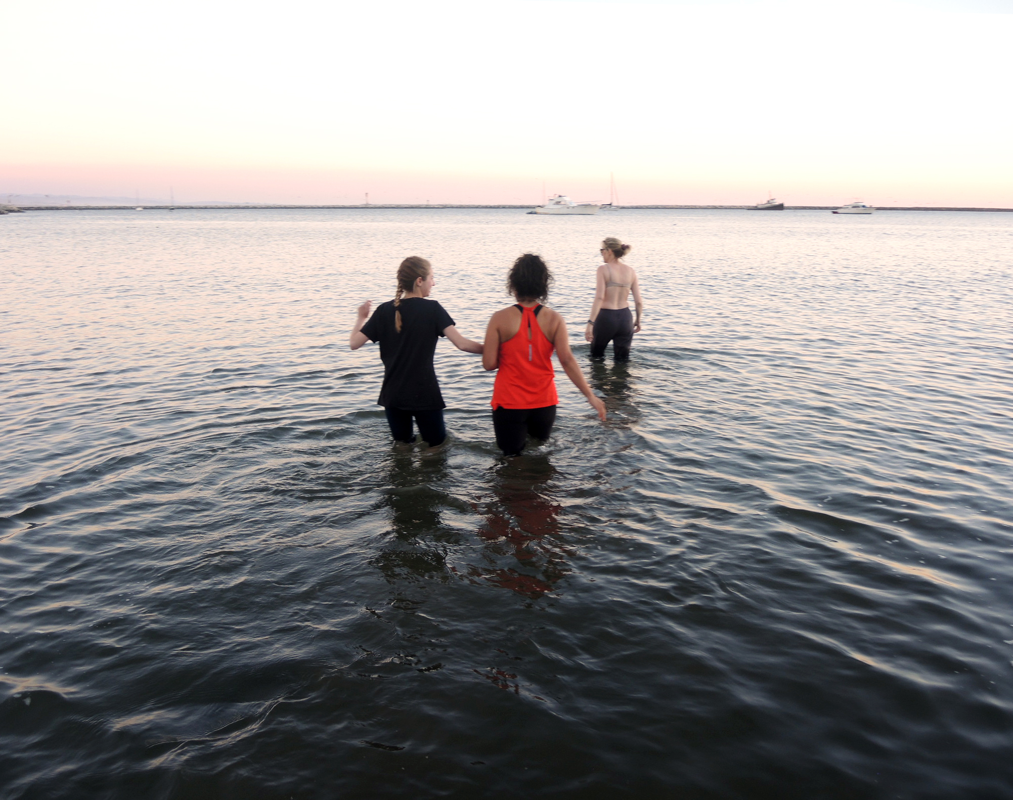 In unfamiliar pairs, one woman chose to be blind, one chose to lead. Each trusting that they would easily make it through the light traffic down the street to the cliff above the beach where the ceremony would continue.