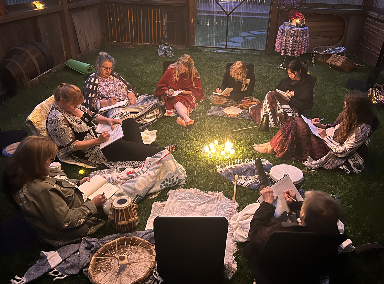 During Sunday’s full moon ceremony, the atmosphere was filled with a sense of ancient enchantment as our tribe gathered to honor the Greek goddess Artemis. As I immersed myself in the art of storytelling and the rhythmic beating of the drums, the timeless traditions of our ancestors seemed to come alive once more. With each pulsating beat of the drums, we felt our cellular vibrations aligning in a rhythmic entrainment, connecting us to a deeper, more primal level of existence. As the ceremony drew to a close, we gathered around the ceremonial fire, the flames dancing in homage to the ancient goddess Artemis and her ethereal tribe of fairy nymphs. With a sense of reverence and awe, we cast colorful fairy dust into the fire, an offering that symbolized our profound connection to the natural world and the divine feminine energy that flows through us all.