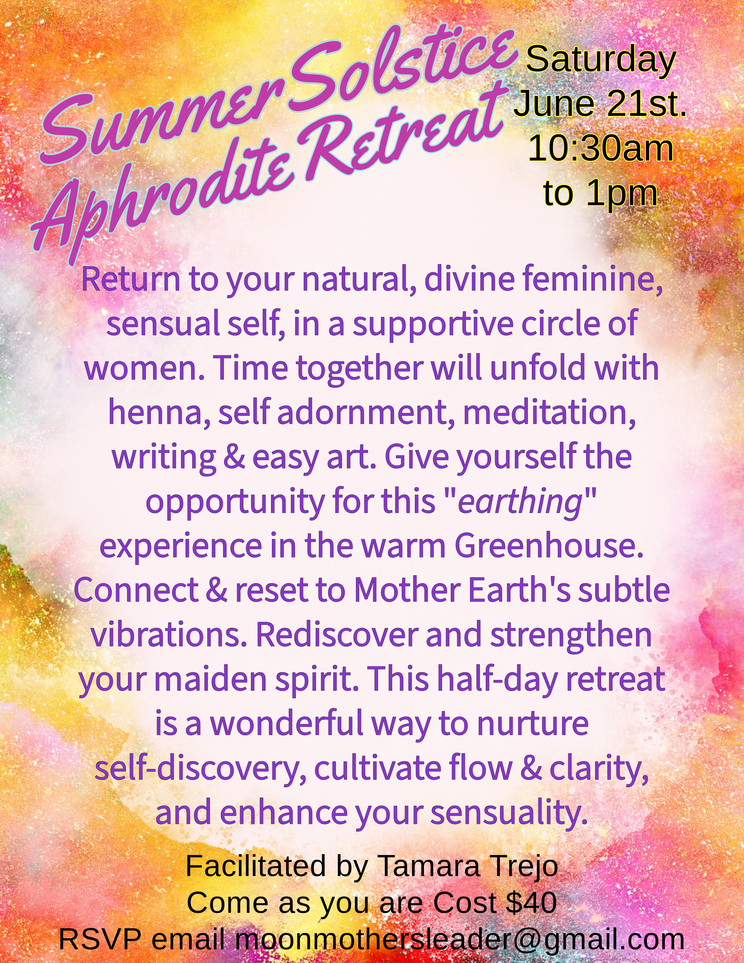 It’s going to be a wonderful June in the Greenhouse, hope you can join us. ’til we meet again, keep creating art, caring for yourself first, honor your mother and the mother within you.