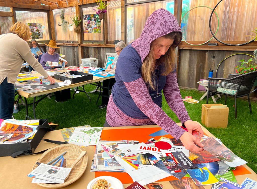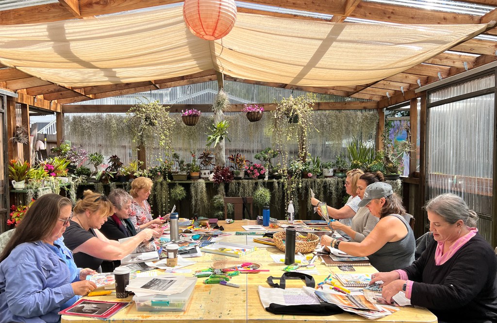 Spring arrived in full bloom. Our first Sagehood Art Journal circle reflected that spirit beautifully — a mix of returning artists and new faces, coming together like a fresh spring garden in vibrant, unfolding color. The Greenhouse was buzzing with creativity and connection. The weeks unfolded with our Sagehood Art Journal, creative journey where we followed our Muse through the evolving stages of our lives. Through mixed-media art , we traced the threads of our stories and uncovered the wisdom, and symbols that shape our lives.