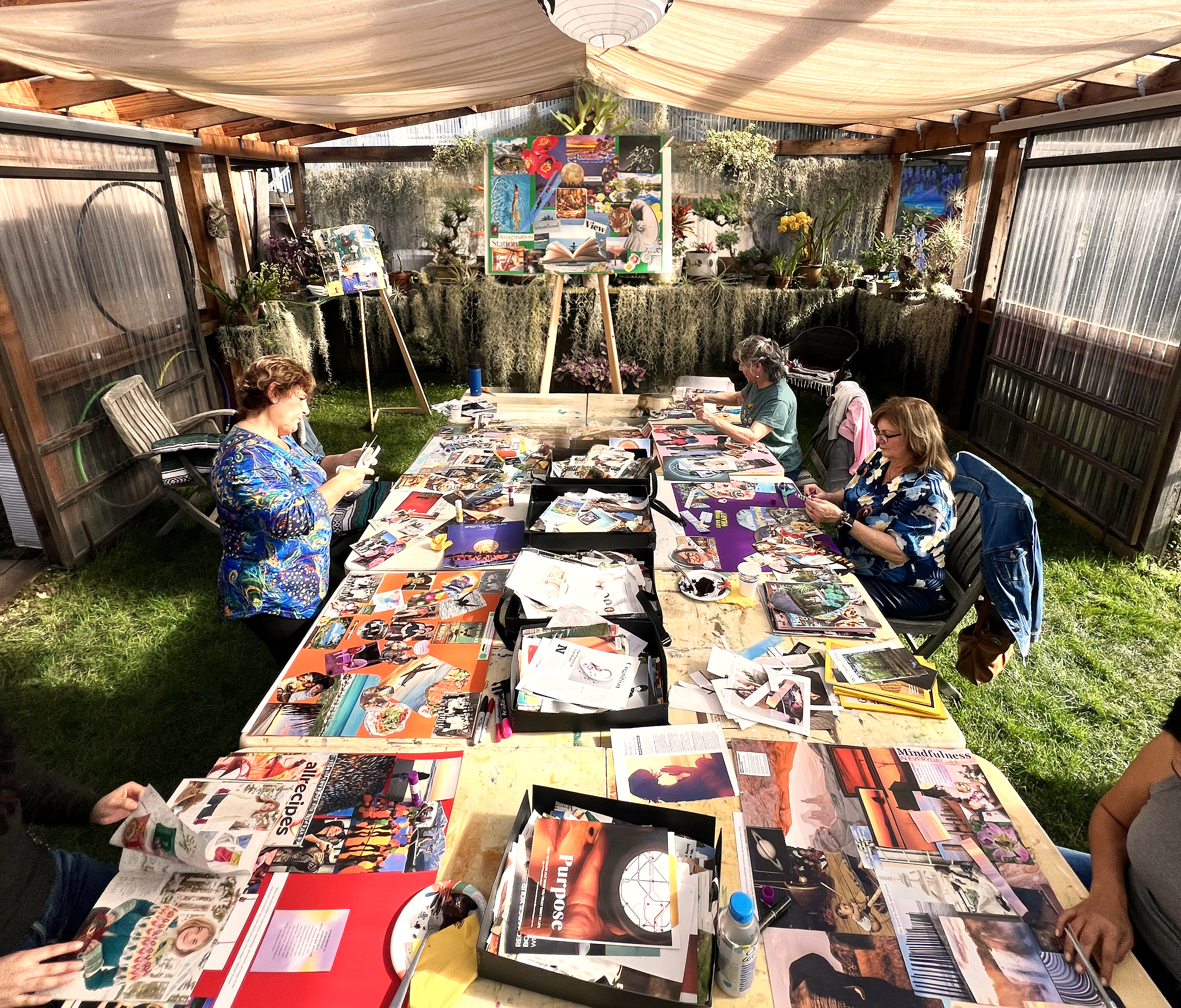 Yesterday, we gathered for our annual Spirit~Quest Collage Circle. Each woman created a 20” x 24” collage illustrating her vision of a rich and abundant new year. Some images were placed with intention; others emerged through trust in the randomness of the universe. Every collage was unique, meaningful, and deeply personal. Below are images from our mystical gathering.