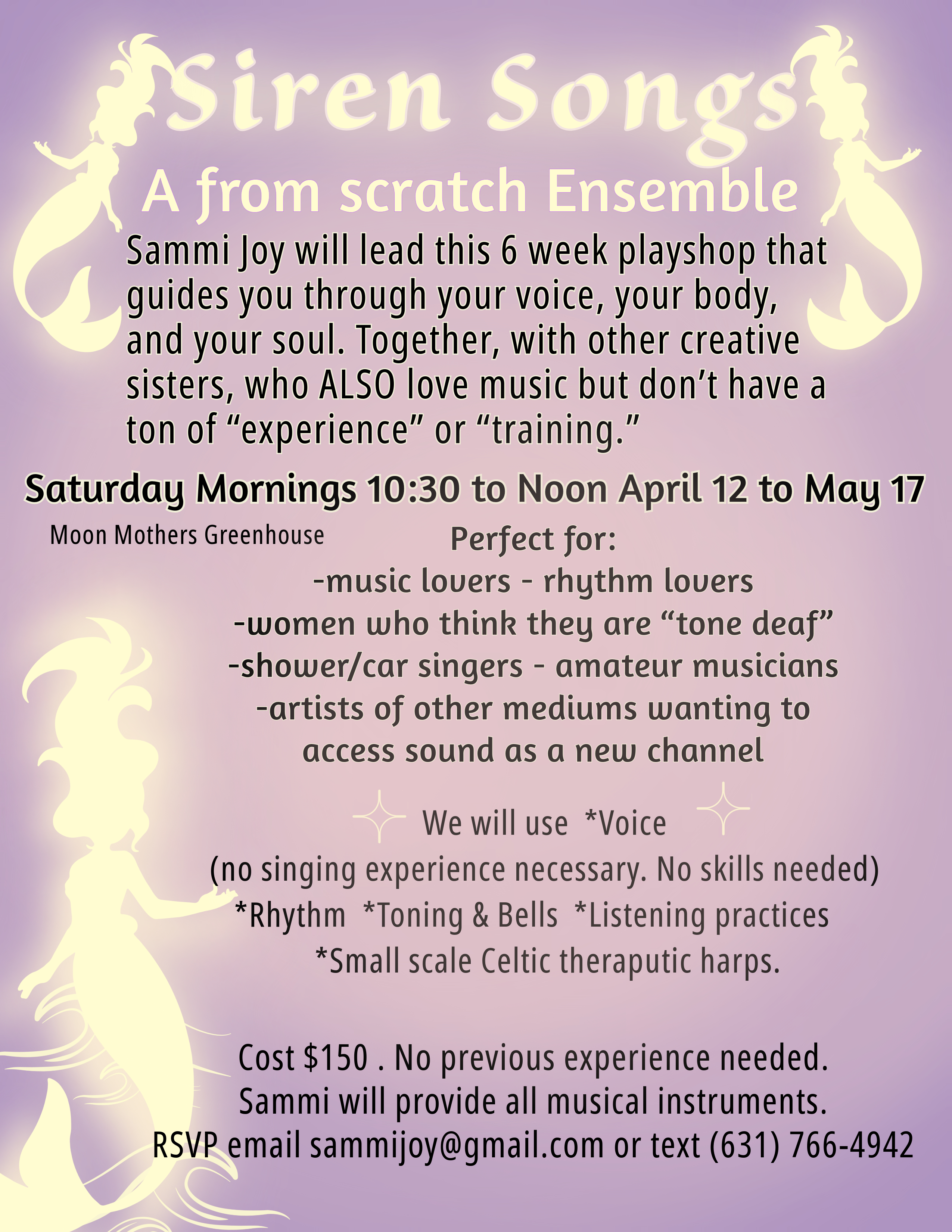 This circle emphasizes self-expression through sound and connecting with others, rather than focusing on “performance skills.” Although we may certainly be ready to perform together after 6 weeks. You never know! Most importantly, you will gain tools to gently integrate music into your life. These tools will resonate with your energy, body, and mind. This journey will help you discover what music brings you joy and introduce you to new sounds and supportive friends.